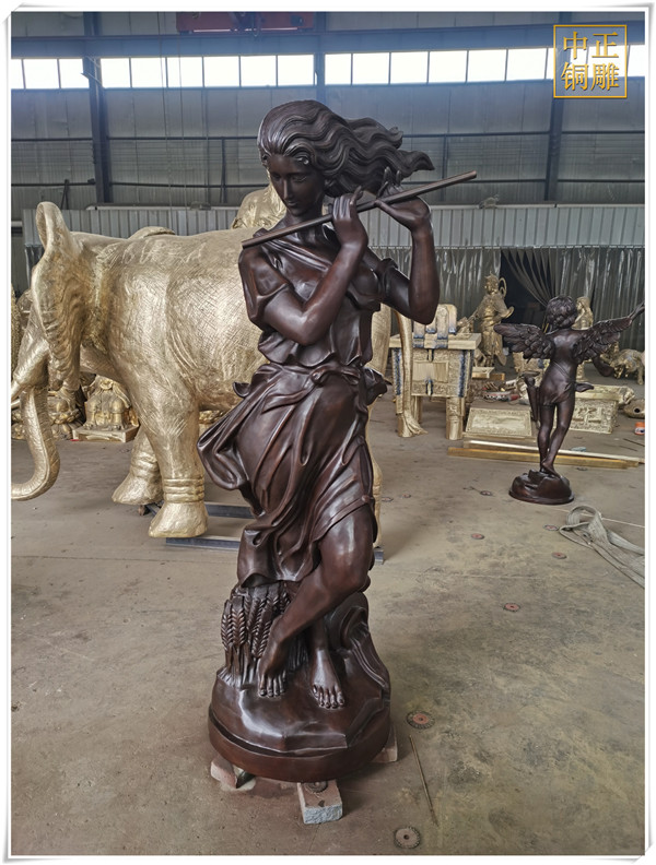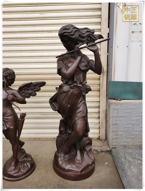 在中西方雕塑思維模式發(fā)展過程中,西方的雕塑文化形成了重視邏輯推理的思維模式,它結(jié)合古希臘的科學(xué)主義和理想主義,為雕塑藝術(shù)的典范奠定了重要基礎(chǔ);中國的雕塑文化則形成了強(qiáng)調(diào)直觀意向的思維方式,它通過直覺來直接體驗、感悟并把握對象.這種思維方式超越了邏輯、概念而更長于悟性.中正銅雕-西方吹笛子女銅雕塑價格、西方吹笛子女銅雕塑圖片、西方吹笛子女女銅雕塑批發(fā),中正銅雕廠制作的西方吹笛子女銅雕塑總高1.9米,我廠主營各種銅雕塑制作,包含人物雕塑、動物雕塑、銅雕佛像等等,制作工藝精湛、做工精細(xì),質(zhì)優(yōu)價廉,是您選擇訂購銅雕廠家不錯的選擇。