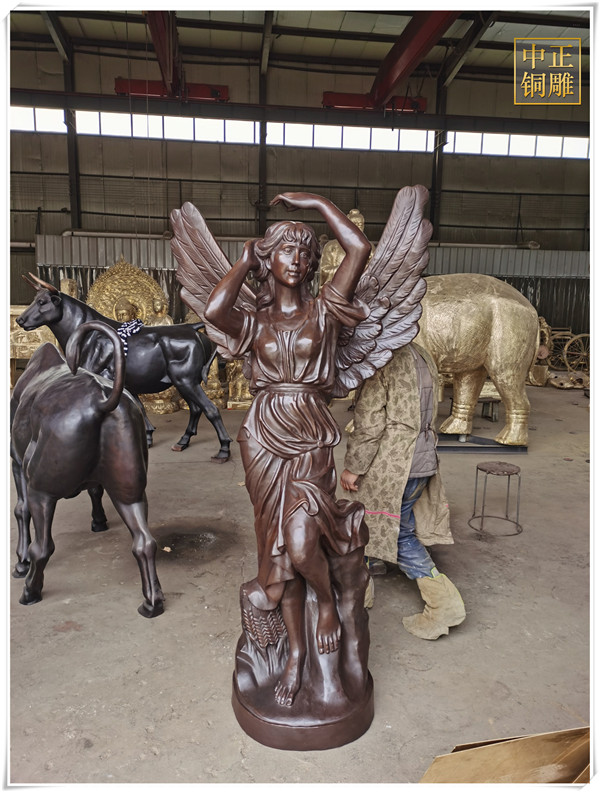中正銅雕-西方天使女雕塑,西方天使女雕塑圖片,西方天使女雕塑批發,中正銅雕廠制作的西方天使女銅雕塑像總高2.03米,到頭頂1.85米,我廠多年來,為各大名山古廟修善、城市建設、景區建設等鑄造出了一批批的精美銅雕工藝品,我廠鑄造的產品,放置于國內各地、東南亞地區以及一些知名景區鑄造的大型雕塑作品,令游客駐足,有需要的客戶歡迎前來我廠實地考察。