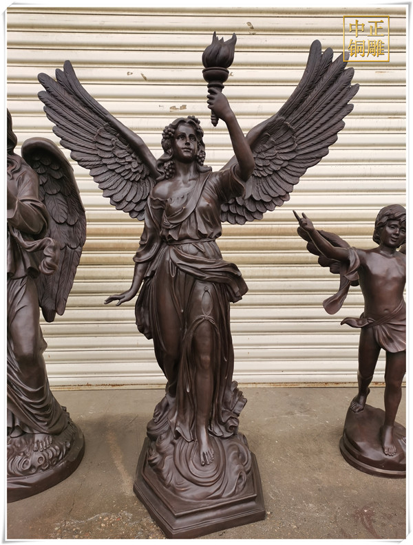 中正銅雕-天使女銅雕塑價格、天使女銅雕塑廠家、天使女銅雕塑圖片,中正銅雕廠家制作的天使女銅雕塑總高2.25米,到頭頂1.9米。我公司集科研、開發設計、普通鑄造、一次性整體澆鑄、精密鑄造于一體。本公司技術力量雄厚,不但重視中國青銅器原有的藝術風格,還繼承了文物原有的藝術品位,在繼承和發揚古老文化的同時,更深一步為新老客戶量制各種銅制、鐵制工藝品等。