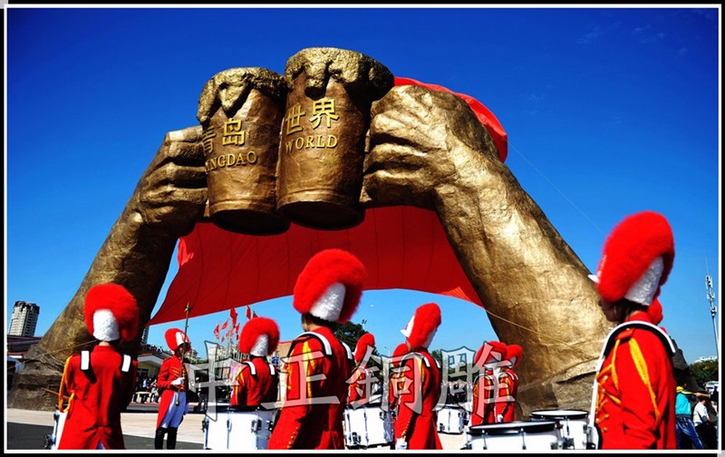 安裝于山東省青島市區金沙灘國際啤酒節黃島廣場,雕塑總高13.8米,重35噸,歷時3個月完工。青島國際啤酒節始創于1991年,每年在青島的黃金旅游季節8月的第二個周末開幕,為期16天。節日由國家有關部委和青島市人民政府共同主辦,是融旅游、文化、體育、經貿于一體的國家級大型節慶活動。是亞洲的啤酒盛會。如今,啤酒節已經成為彰顯青島城市個性優勢與魅力的盛大節日,以啤酒為媒介,展現了青島啤酒公司和城市。我們此次安裝的雕塑為此隆重節日再添亮麗風景。